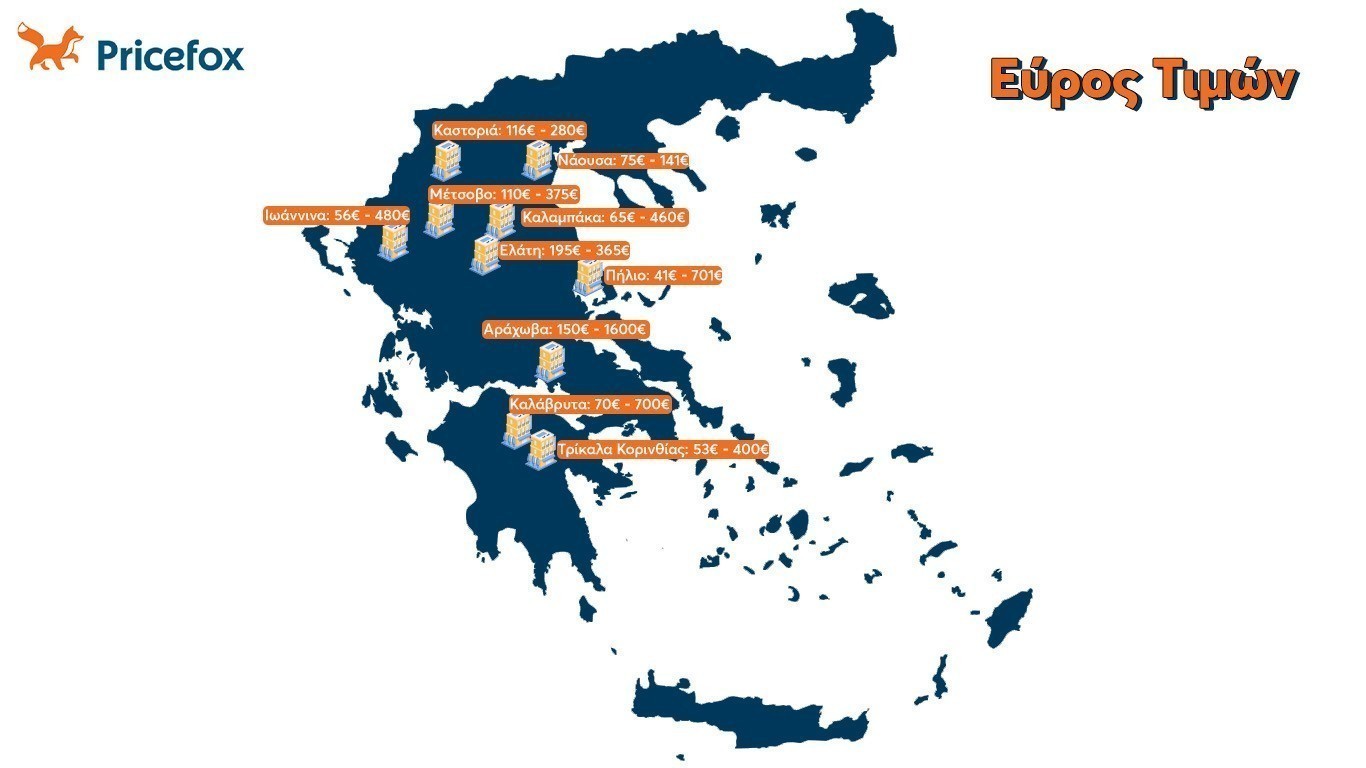 Αυτό, ωστόσο, δεν σημαίνει ότι κατά περίπτωση δεν μπορεί, όποιος κάνει τη σωστή έρευνα, να βρει ακόμη και πιο προσιτές λύσεις όπως συμβαίνει με το Πήλιο, όπου οι τιμές καταλυμάτων ξεκινούν από τα 42 ευρώ ανά διανυκτέρευση, τα Τρίκαλα Κορινθίας από τα 54 ευρώ ανά διανυκτέρευση, τα Ιωάννινα από 56 ευρώ ανά διανυκτέρευση και την Καλαμπάκα από 65 ευρώ ανά διανυκτέρευση.