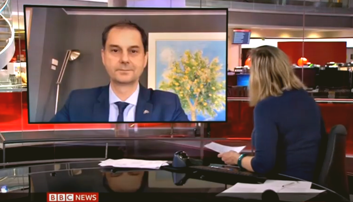 Στο μεσημεριανό κεντρικό δελτίο ειδήσεων του BBC News προβλήθηκε συνέντευξη του Υπουργού Τουρισμού κ. Χάρη Θεοχάρη, με θέμα την αντιμετώπιση της κρίσης του κορωνοϊού εκ μέρους της Ελλάδας και τον αντίκτυπό της στον τουρισμό.