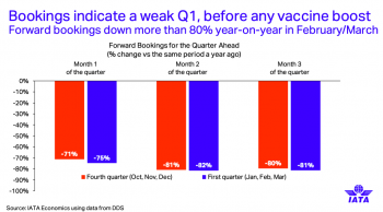 Ο γενικός διευθυντής της κ. Alexandre de Zuniac δήλωσε χθές ότι οι «αεροπορικές θα εξακολουθήσουν να καίνε μετρητό και τους πρώτους μήνες του 2021, τα ταξίδια και ο τουρισμός δεν θα ανακάμψουν και οι θέσεις εργασίας θα εξακολουθήσουν να χάνονται στον κλάδο. Οι κυβερνήσεις, διεθνώς, λόγω της μετάλλαξης του ιού, ήδη από τις τελευταίες εβδομάδες του 2020 έθεσαν ακόμη περισσότερους περιορισμούς, ενώ και οι πρώτοι μήνες του 2021 είναι πολύ δύσκολοι.