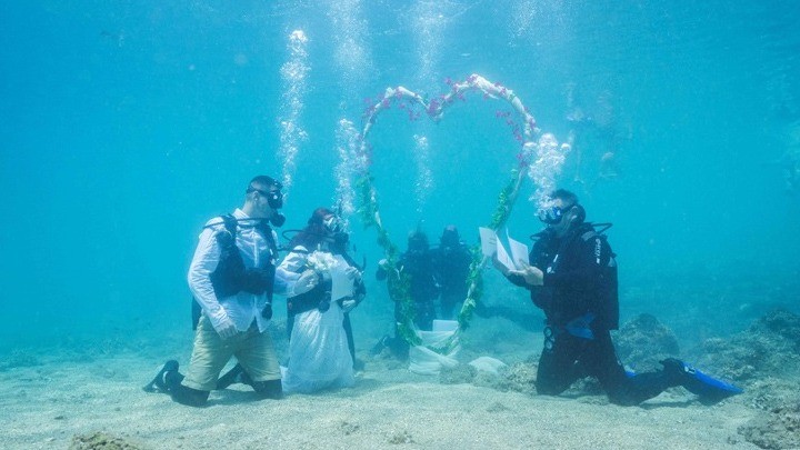 Εμπλουτίζουμε το κάλεσμα μας για επίσκεψη στην Αλόννησο με πρωτοβουλίες που φέρνουν τους ταξιδιώτες πιο κοντά στη φύση, σε σημαντικές στιγμές της ζωής τους», αναφέρει χαρακτηριστικά ο Δήμαρχος Αλοννήσου Πέτρος Βαφίνης. Σημειώνεται πως ο πρώτος υποβρύχιος γάμος πραγματοποιήθηκε τον περασμένο Αύγουστο, ανοίγοντας τον δρόμο σε μια νέα υπηρεσία για την οποία ήδη υπάρχει ζήτηση για προγραμματισμό νέων γάμων στο εξωτικό νησί των Σποράδων το φετινό καλοκαίρι.