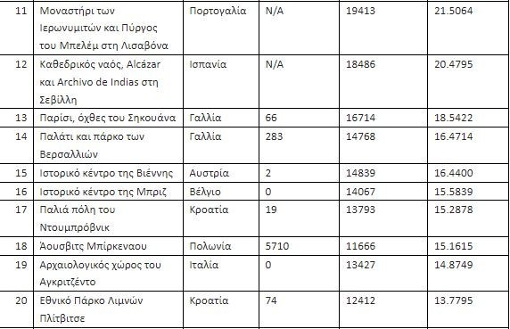 Στον κόσμο υπάρχουν 1.100 Μνημεία Πολιτιστικής Κληρονομιάς της UNESCO, εκ των οποίων 503 βρίσκονται στην Ευρώπη. Η loveholidays ανέδειξε τα 30 δημοφιλέστερα στους ταξιδιώτες, που είναι τα ακόλουθα: