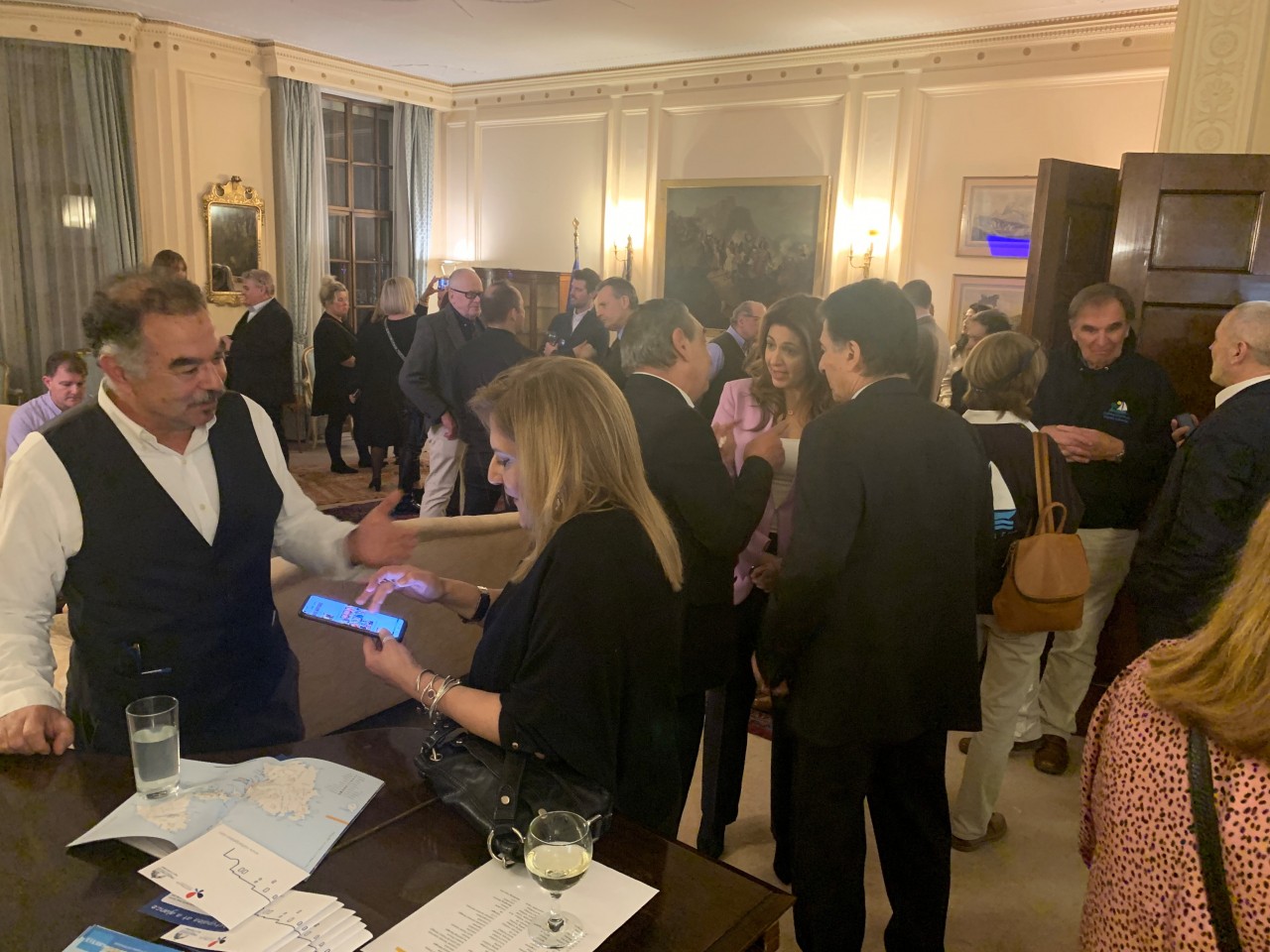 Την εκδήλωση χαιρέτησε ο Πρέσβης της Ελλάδας στο Λονδίνο κ. Ιωάννης Ραπτάκης, που παρείχε για πρώτη φορά, στην τελευταία πενταετία, τη δυνατότητα στον ΕΟΤ να πραγματοποιήσει εκδήλωση υψηλού κύρους στην πρεσβευτική κατοικία. Προλόγισε η Προϊσταμένη της Υπηρεσίας ΕΟΤ- Ην. Βασιλείου & Ιρλανδίας, κα Ελένη Σκαρβέλη, και ακολούθησαν παρουσιάσεις των δύο προορισμών με τη συμμετοχή του Δημάρχου Αλοννήσου κ. Πέτρου Βαφίνη, και του Δημάρχου Αστυπάλαιας κ. Νίκου Κομηνέα.