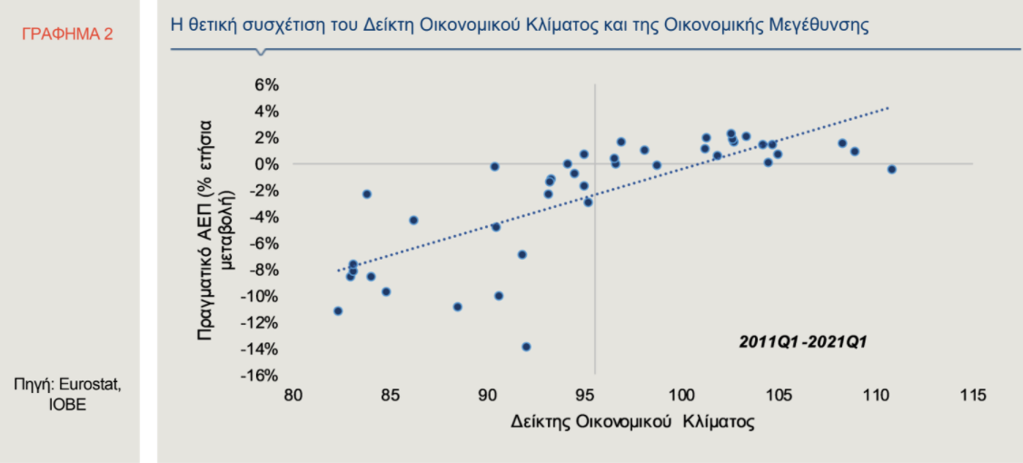Συνοψίζοντας, η πορεία του Δείκτη Οικονομικού Κλίματος κατά το δεύτερο τρίμηνο του έτους, η οποία συνεχίζεται και τον μήνα Ιούλιο, αντανακλά τις βελτιωμένες προσδοκίες για την πορεία της οικονομίας και αποτελεί πρόδρομο δείκτη της σταδιακής ανάκαμψης της οικονομικής δραστηριότητας, αντισταθμίζοντας σε μεγάλο βαθμό τις αρνητικές επιπτώσεις της πανδημίας και των μέτρων περιορισμού που ακολούθησαν.