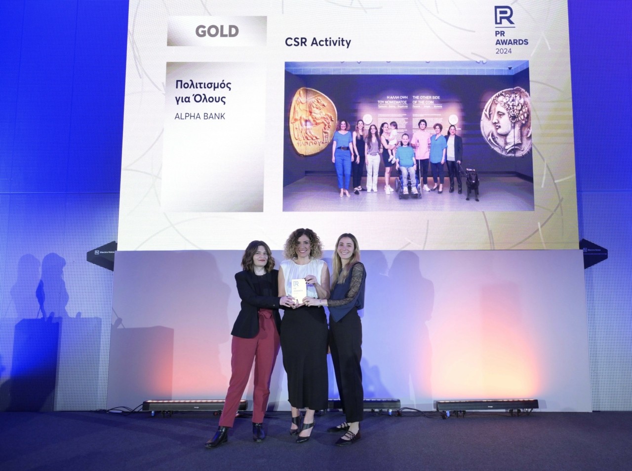 Επιπλέον, η Τράπεζα κέρδισε Silver βραβείο στην κατηγορία “Media Relations” για τη διοργάνωση media event για την πρώτη καθολικά προσβάσιμη έκθεσή της «Η άλλη όψη του Νομίσματος» με αφορμή τα 50 χρόνια της Νομισματικής Συλλογής της. Η Alpha Bank διοργάνωσε ειδική εκδήλωση και βιωματική ξενάγηση στην έκθεση για εκπροσώπους του Τύπου, αλλά και φορείς ΑμεΑ, στέλνοντας στο ευρύ κοινό ένα σημαντικό μήνυμα συμπερίληψης.