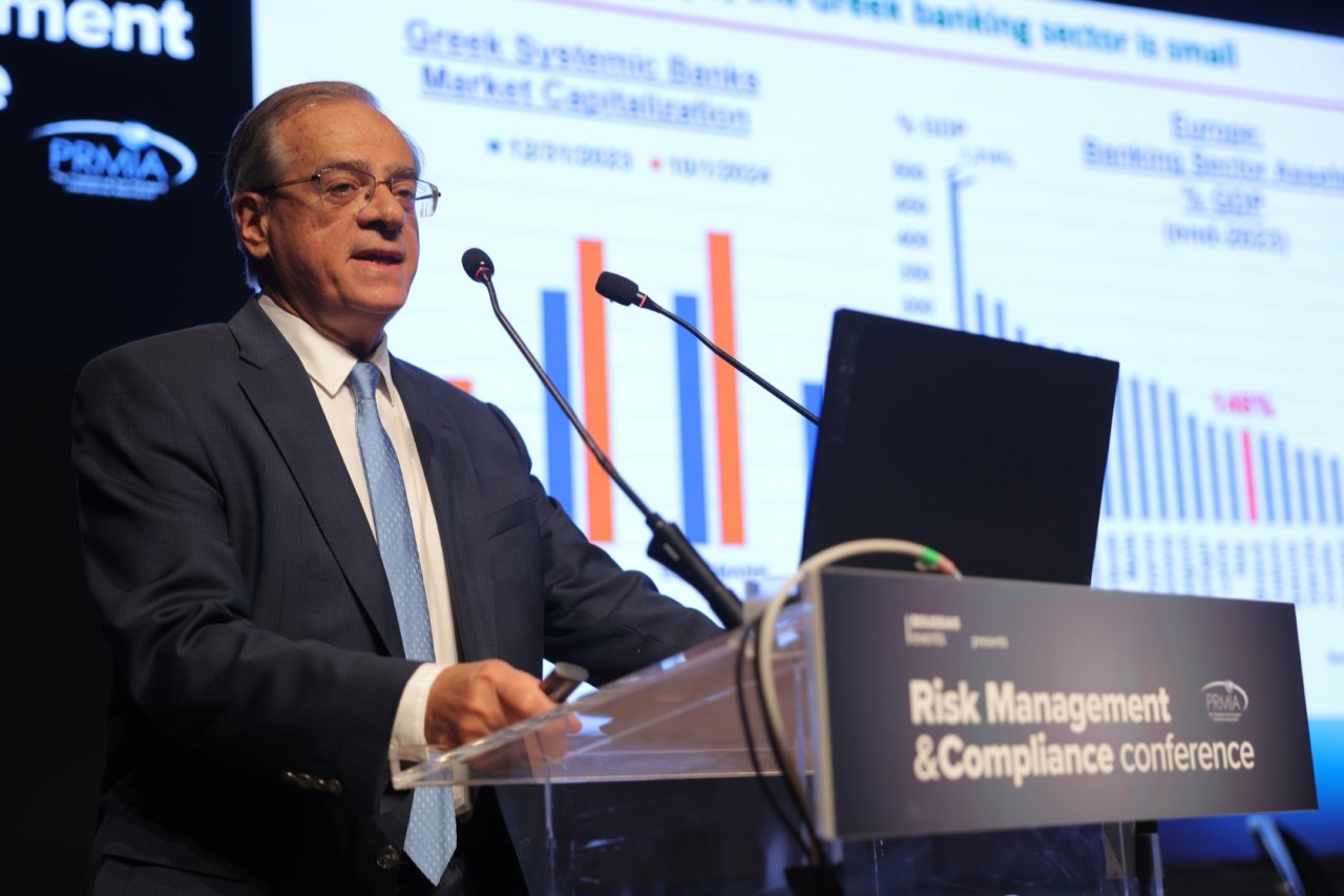 Για τη σημερινή κατάσταση των ελληνικών τραπεζών, τη μεγάλη απόσταση που έχουν διανύσει τα τελευταία χρόνια, και τις προοπτικές τους στο απαιτητικό και γεμάτο προκλήσεις εγχώριο και παγκόσμιο οικονομικό περιβάλλον, μίλησε σήμερα ο Πρόεδρος του Δ.Σ. της Εθνικής Τράπεζας και της Ελληνικής Ένωσης Τραπεζών κ. Γκίκας Α. Χαρδούβελης, στο συνέδριο “Risk Management & Compliance 2024” που διοργάνωσε η Boussias events στο Μέγαρο Μουσικής Αθηνών.