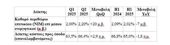 Τα επαναλαμβανόμενα κέρδη προ φόρων (PBT) ανήλθαν σε €27,6 εκατ. στο Α’ Εξάμηνο 2025 από €1,6 εκατ. την αντίστοιχη περίοδο του 2024 (17 φορές υψηλότερα), λόγω της εντυπωσιακής επίδοσης των βασικών εσόδων (NII και καθαρών προμηθειών).