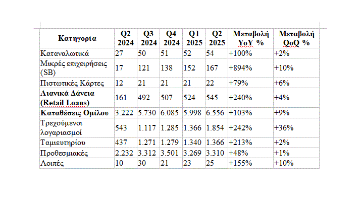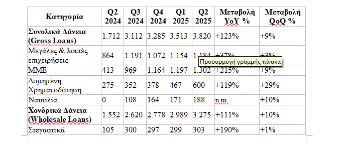 Η καθαρή πιστωτική επέκταση ήταν ύψους 542 εκατ. ευρώ στο πρώτο εξάμηνο του 2025, εξασφαλίζοντας μερίδιο αγοράς άνω του 10% στις νέες επιχειρηματικές δραστηριότητες.