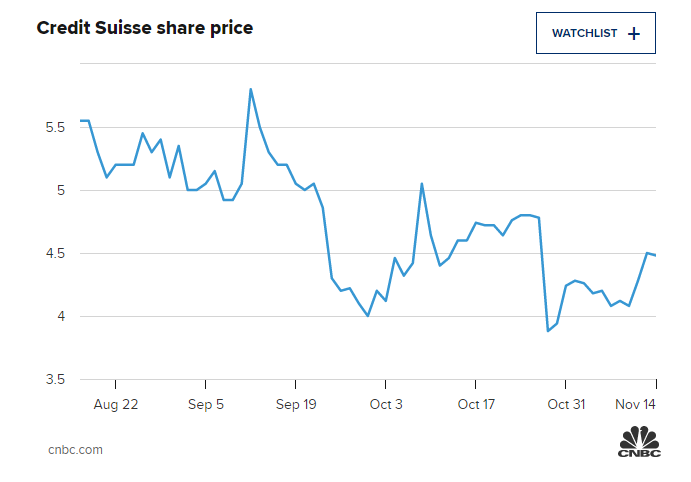 Η Credit Suisse στα τέλη Οκτωβρίου ανακοίνωσε μια τεράστια στρατηγική αναδιάρθρωση, και την ίδια ώρα με μια σημαντική ζημιά στα αποτελέσματα τριμήνου, λόγω υποτονικών εσόδων από την επενδυτική τραπεζική και δικαστικών δαπανών που σχετίζονται με μια σειρά αποτυχιών συμμόρφωσης και διαχείρισης κινδύνου.