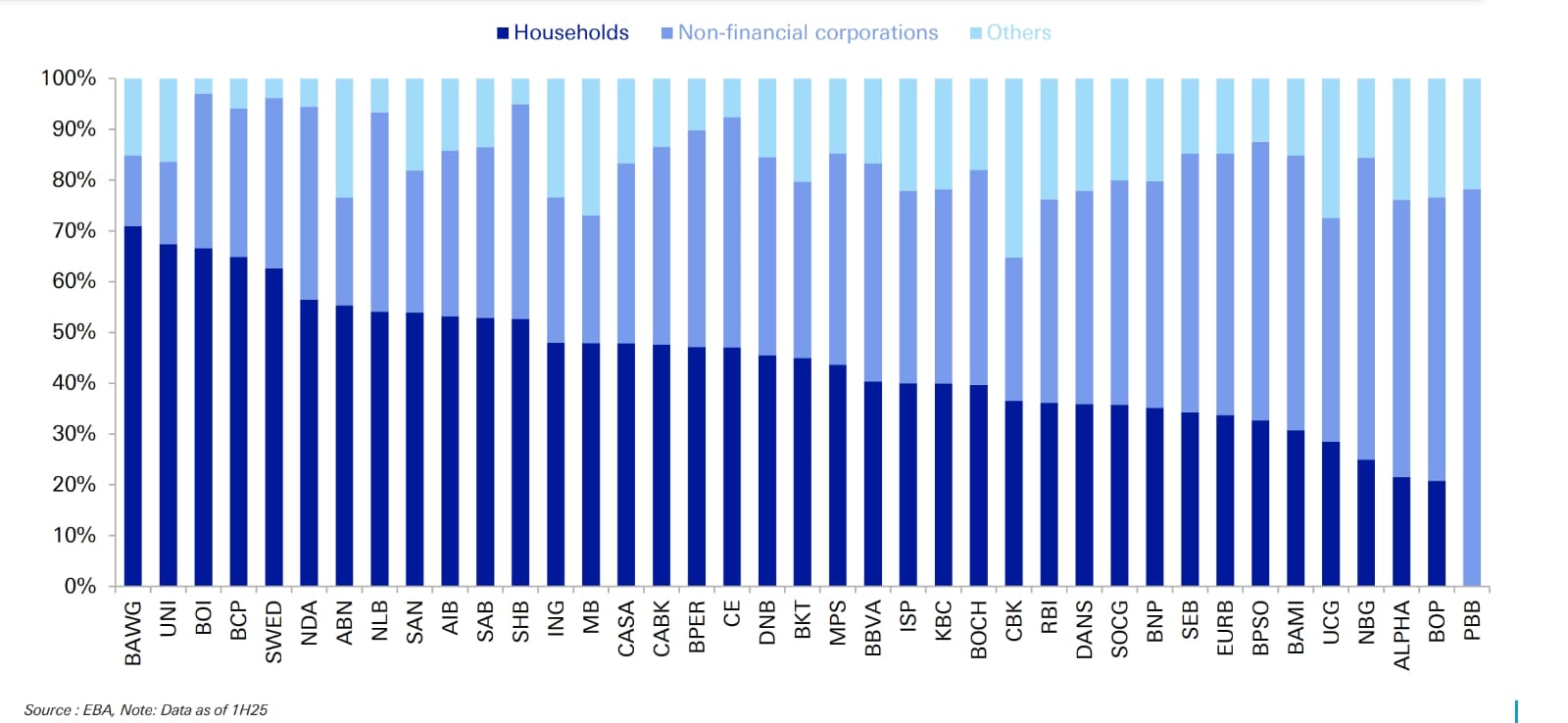 O οίκος εκτιμά ότι οι τράπεζες αυτές είναι σε θέση να παραμείνουν ακραία θετικές περιπτώσεις στην Ευρώπη, παρουσιάζοντας συνεχή βελτίωση σε τομείς όπου στο παρελθόν υστερούσαν, κυρίως στην ποιότητα ενεργητικού και στα επίπεδα κεφαλαιακής επάρκειας. Παρότι οι αγορές έχουν εν μέρει αναγνωρίσει αυτή την πρόοδο μέσω μιας ισχυρής ανατίμησης ο οίκος εκτιμά ότι οι τρέχουσες αποτιμήσεις δεν αντικατοπτρίζουν πλήρως τη μελλοντική δημιουργία αξίας, συμπεριλαμβανομένης της δυνατότητας αυξημένων αποδόσεων κεφαλαίου.