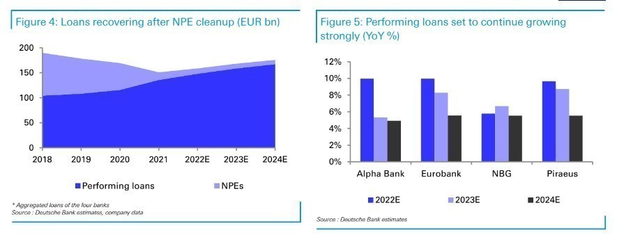 «Παρά το γεγονός ότι οι ελληνικές τράπεζες έχουν υπεραποδώσει έναντι των ευρωπαϊκών τραπεζών κατά περίπου 25% φέτος, κυρίως αντανακλώντας τις ισχυρές δυνατότητες ανάκαμψης μετά τη μαζική εκκαθάριση των παλαιών κόκκινων δανείων, πιστεύουμε ότι εξακολουθούν να παραμένουν εκτός του ραντάρ των περισσότερων επενδυτών, πιθανότατα λόγω του γεγονότος ότι ο κόσμος εξακολουθεί να ανησυχεί ότι αυτές οι τράπεζες είναι πιο επιρρεπείς σε κατάρρευση, όπως έχει παρατηρηθεί στην προηγούμενη κρίση», εξηγεί η Deutsche Bank.