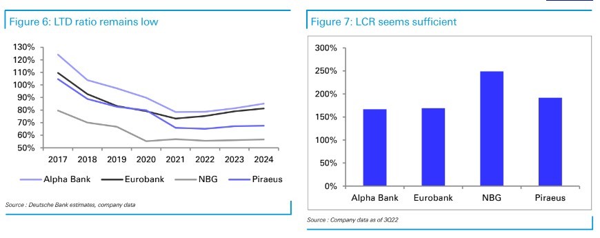 Τέλος, η DB βλέπει τα κόστη διαχειρίσιμα, με περιορισμένο κίνδυνο, ιδίως για τις τράπεζες με υψηλότερη κάλυψη (ΕΤΕ και Eurobank). Από την άλλη πλευρά, τα κεφάλαια δεν φαίνεται να αποτελούν πλέον απειλή, με την Πειραιώς να είναι βρίσκεται χαμηλότερα, αλλά επιδεικνύει γρήγορη ανάκαμψη.