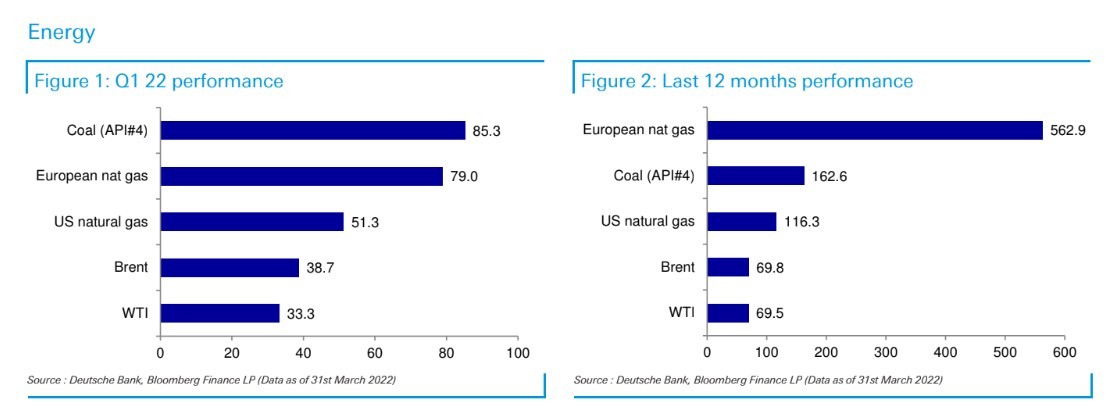Η Deutsche Bank πιστεύει ότι οι προοπτικές στην Ευρώπη και παγκοσμίως έχουν γίνει πολύ πιο αβέβαιες. Η διάρκεια του κύκλου των εμπορευμάτων μετά την πανδημία είναι πιθανό να καθοριστεί από την διάρκεια του πολέμου και την έκταση των σοκ στην προσφορά και τις τιμές της ενέργειας και των τροφίμων.