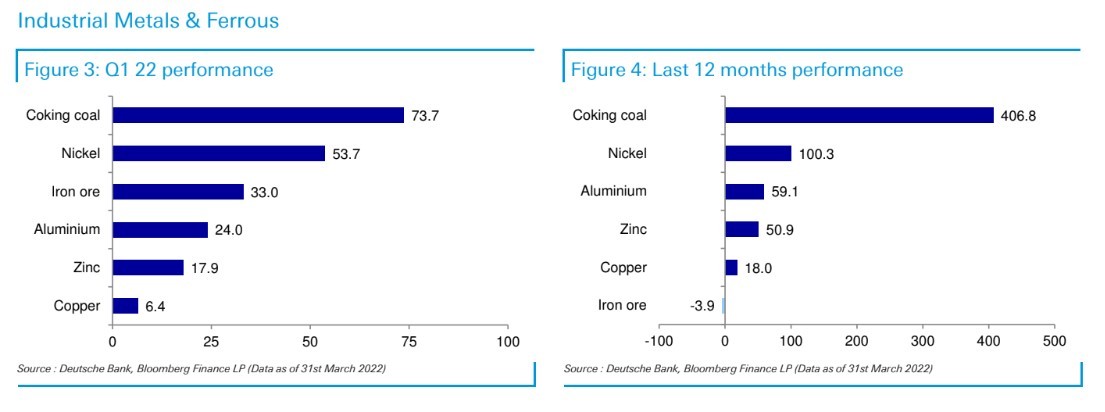 O λιθάνθρακας (coking coal), διαμορφώνεται πάνω από 400% υψηλότερα μέσα σε δώδεκα μήνες και σχεδόν 75% υψηλότερα το πρώτο τρίμηνο. Σχεδόν όλα τα βασικά μέταλλα που χρησιμοποιούνται στην παραγωγή είναι όλα υψηλότερα το τελευταίο δωδεκάμηνο με διψήφια ποσοστά ανόδου.