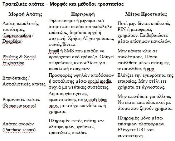 Ωστόσο, καμία τράπεζα δεν ζητά ποτέ τηλεφωνικά ή μέσω email κωδικούς, PIN ή μεταφορές χρημάτων. Είναι σημαντικό η οποιαδήποτε αμφιβολία να σταματάει τις ενέργειες του χρήστη.