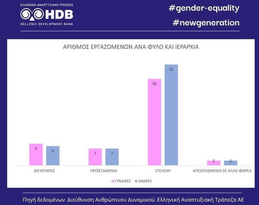 Εκτός της Προέδρου & Διευθύνουσας Συμβούλου, Αθηνάς Χατζηπέτρου, γυναίκες επιλέχθηκαν και στις μισές θέσεις γενικών διευθυντών, διευθυντών και προϊσταμένων: 15 γυναίκες σε σύνολο 30 θέσεων. Κατά την επιλογή στελεχών δόθηκε ιδιαίτερη έμφαση στην ισομερή στελέχωση μεταξύ των φύλων σε όλα τα ιεραρχικά επίπεδα, βάσει ικανοτήτων.