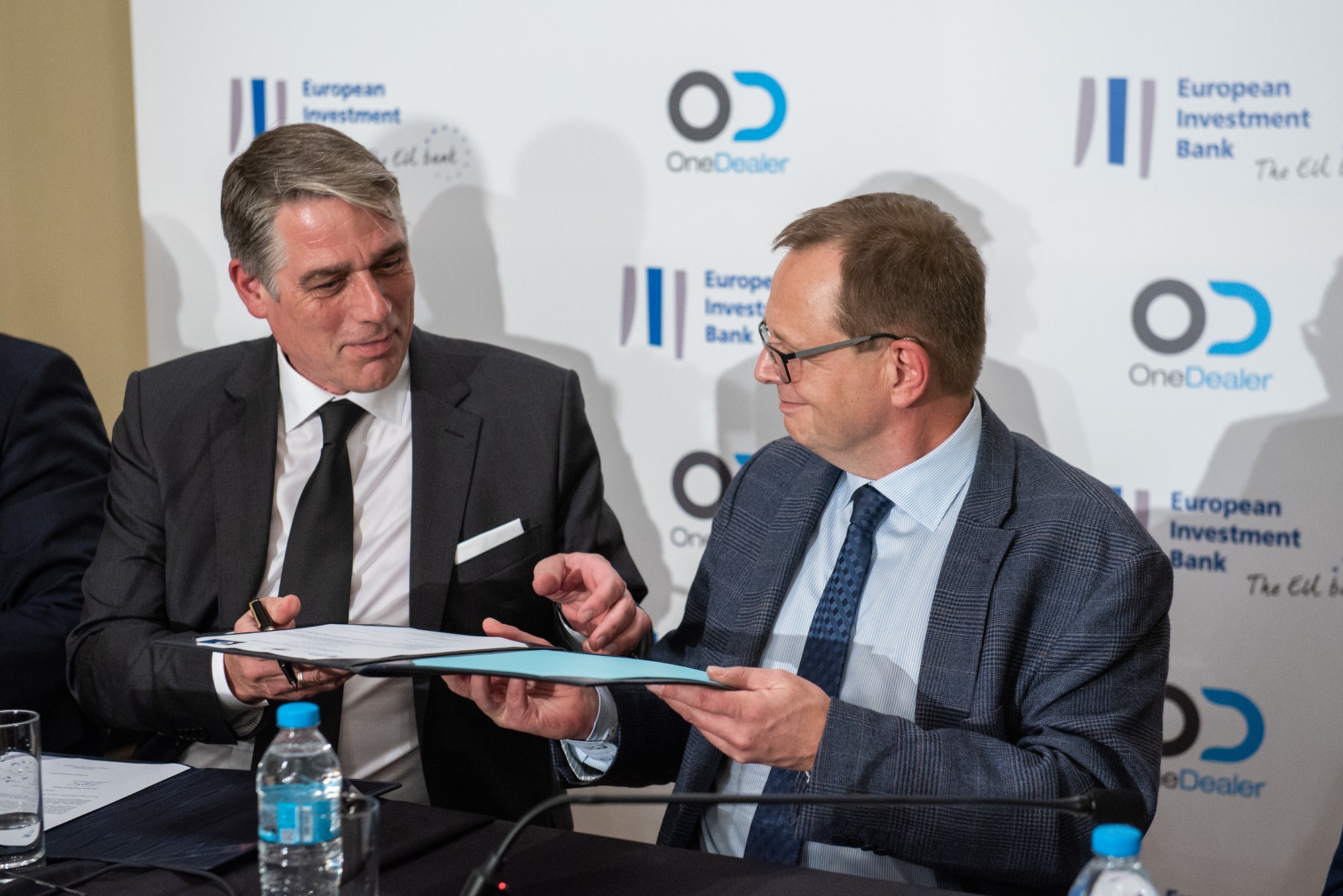 Η συνεργασία μεταξύ της ΕΤΕπ και της OneDealer International, η οποία αποτελεί μέλος του Ομίλου Real Consulting, κορυφαίας εταιρείας παροχής συστημάτων, εφαρμογών και προϊόντων, ανακοινώθηκε στα γραφεία της επιχείρησης στην Αθήνα, την Πέμπτη 24 Νοεμβρίου, στο πλαίσιο τελετής υπογραφής της δανειακής συμφωνίας από τον Christian Kettel Thomsen, αντιπρόεδρο της ΕΤΕπ και τον διευθύνοντα σύμβουλο της OneDealer Robert Battenstein.