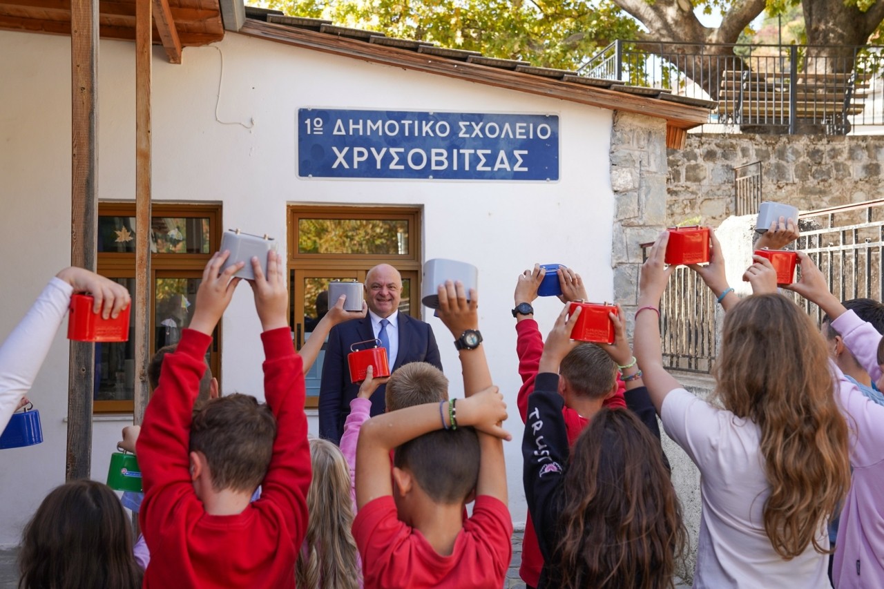 Στο πλαίσιο των δράσεων για την Παγκόσμια Ημέρα Αποταμίευσης ο Πρόεδρος του Διοικητικού Συμβουλίου της Τράπεζας, κ. Γιώργος Π. Ζανιάς, επισκέφθηκε το 1ο Δημοτικό Σχολείο Χρυσοβίτσας στο Μέτσοβο, συνοδευόμενος από τους κ.κ.: τον επικεφαλής Δικτύου Καταστημάτων της Eurobank Δυτικής Θεσσαλονίκης, Κεντροδυτικής Μακεδονίας, Κεντρικής & Δυτικής Ελλάδας, Παναγιώτη Πλας, τον Διευθυντή Περιφερειακής αγοράς Ιωαννίνων, Θεσπρωτίας και Πρεβέζης, Συμεών Τσώλη, και τον Διευθυντή καταστήματος Ιωαννίνων, Δημήτρη Μπλέτσο.