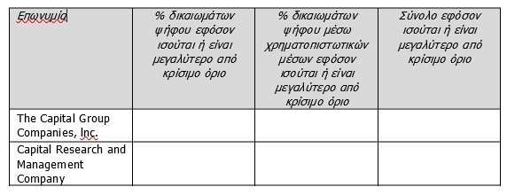 Κατωτέρω παρατίθεται η πλήρης αλυσίδα των εταιρειών μέσω των οποίων κατέχονται τα προαναφερθέντα δικαιώματα ψήφου: