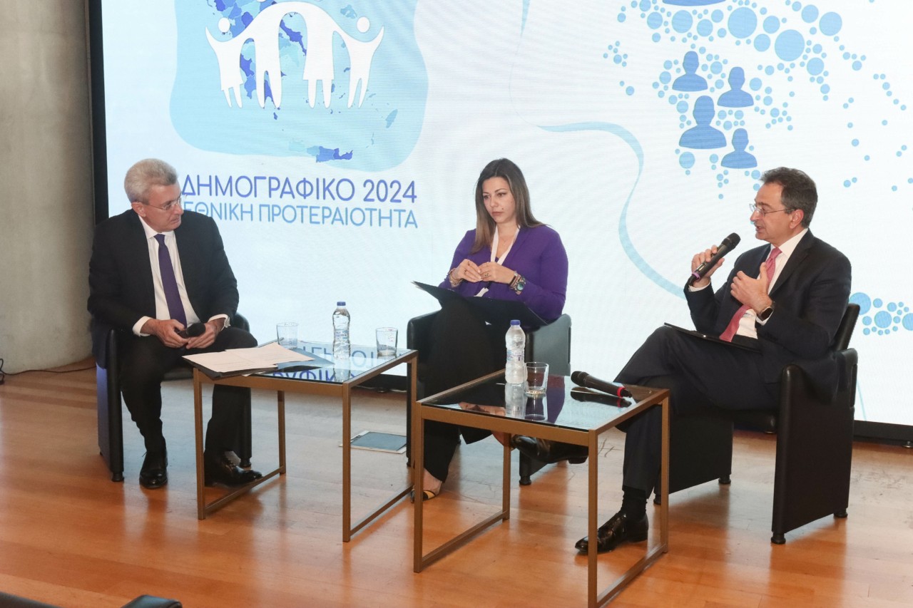 Η Εθνική Πολιτική για το Δημογραφικό αναλύθηκε σε συζήτηση στην οποία συμμετείχαν, η Γενική Γραμματέας Δημογραφικής & Στεγαστικής Πολιτικής, κα Μαρίνα Στέφου, η Βουλευτής του ΣΥΡΙΖΑ, κα Κατερίνα Νοτοπούλου, ο Γενικός Διευθυντής Marketing & Εταιρικής Επικοινωνίας Ομίλου Eurobank, κ. Μιχάλης Βλασταράκης, η Καθηγήτρια Οικονομικών στο Τμήμα Οικονομικής & Περιφερειακής Ανάπτυξης στο Πάντειο Πανεπιστήμιο, κα Αντιγόνη Λυμπεράκη και η Καθηγήτρια Οικονομικής Δημογραφίας στο Χαροκόπειο Πανεπιστήμιο, κα Αλεξάνδρα Τραγάκη. Τη συζήτηση συντόνισε ο δημοσιογράφος κ. Φοίβος Καρζής.