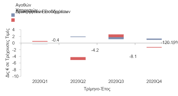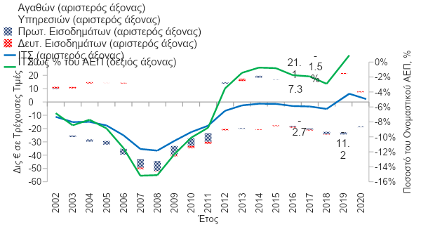 Σχήμα 2: Ελλάδα – Ετήσια Μεταβολή των Ισοζυγίων Αγαθών, Υπηρεσιών, Πρωτογενών και Δευτερογενών Εισοδημάτων