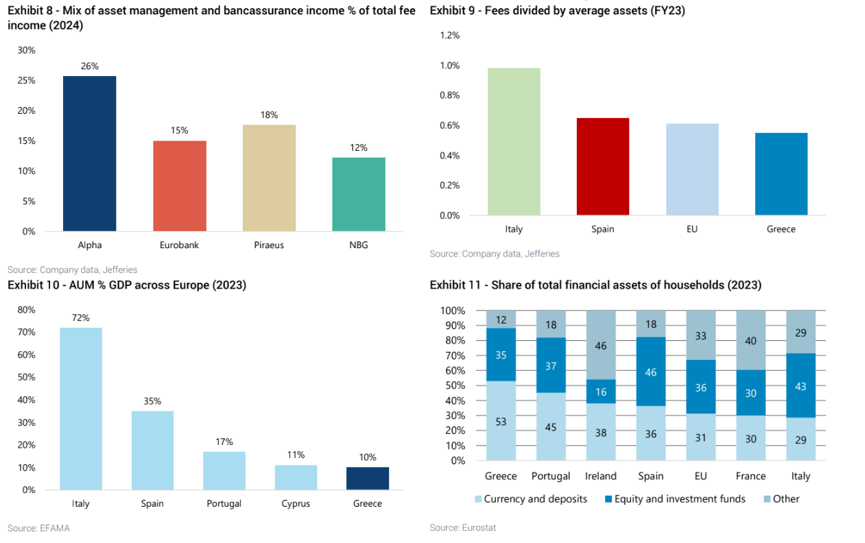 Η διείσδυση του τομέα διαχείρισης κεφαλαίων στην Ελλάδα παραμένει χαμηλή σε σύγκριση με άλλες χώρες της Ε.Ε. Τα έσοδα από προμήθειες ως ποσοστό του ενεργητικού είναι κατώτερα από τον μέσο όρο της Ευρωπαϊκής Ένωσης και των χωρών της Νότιας Ευρώπης. Ειδικότερα, τα AUMs αντιστοιχούν σε μόλις 10% του ΑΕΠ, έναντι περίπου 40% σε αντίστοιχες αγορές της Νότιας Ευρώπης. Παράλληλα, περίπου το 50% των χρηματοοικονομικών περιουσιακών στοιχείων των ελληνικών νοικοκυριών εξακολουθεί να διατηρείται σε καταθέσεις και μετρητά, έναντι 30% κατά μέσο όρο στην Ε.Ε. — γεγονός που αποκαλύπτει σημαντικά περιθώρια ανάπτυξης για τον εγχώριο asset management κλάδο.