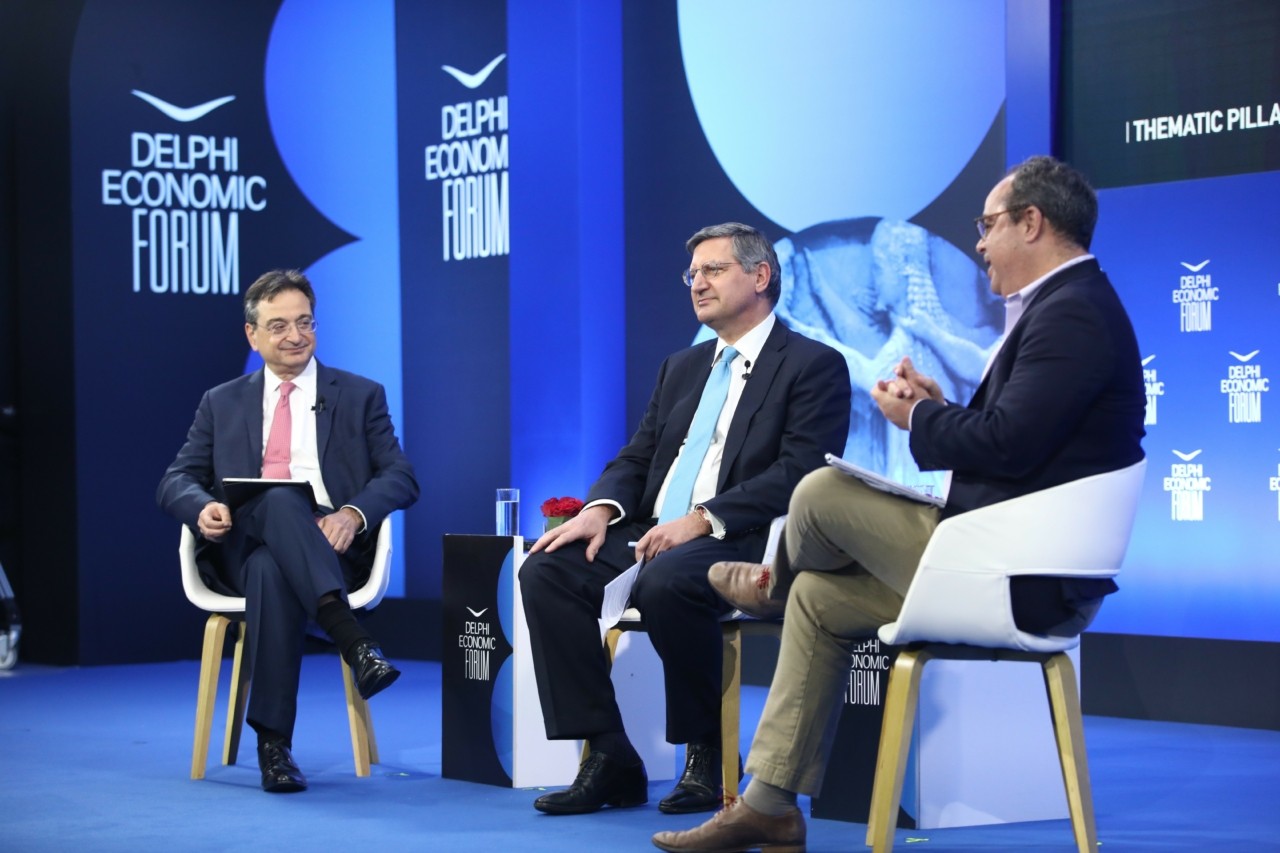 Στις προκλήσεις που αναδύονται, τόσο σε εγχώριο, όσο και διεθνές επίπεδο, από τις διαδοχικές αυξήσεις των επιτοκίων, αλλά και το νέο «θρίλερ» με τη First Republic, εστίασαν οι CEOs Eurobank και Εθνικής Τράπεζας, κ. κ. Φωκίων Καραβίας και Παύλος Μυλωνάς, στο πλαίσιο του 8ου Οικονομικού Φόρουμ των Δελφών.