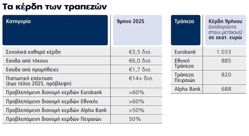 Το τρίτο τρίμηνο του 2025 ανέδειξε την ικανότητα αρκετών πιστωτικών ιδρυμάτων να διαφοροποιούν αποτελεσματικά τις πηγές εσόδων τους, επιβεβαιώνοντας παράλληλα για το σύνολο του τραπεζικού κλάδου τη διατήρηση ισχυρής κερδοφορίας και τη σταθερή τάση για αυξημένες μερισματικές αποδόσεις. Τα μερίσματα εξακολουθούν να αποτελούν κρίσιμο παράγοντα για τους επενδυτές, όμως το πραγματικό στοίχημα βρίσκεται στην ικανότητα των τραπεζών να ενισχύουν τις βασικές τους δραστηριότητες, να αυξάνουν τα καθαρά έσοδα και να διαμορφώνουν σταθερή βάση κερδών που θα στηρίζει διαχρονικά υψηλότερες διανομές.