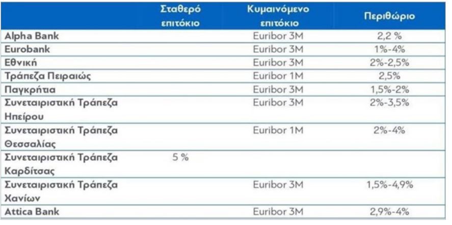 Όσον αφορά στα επιτόκια, αυτά θα διαμορφώνονται ως εξής: