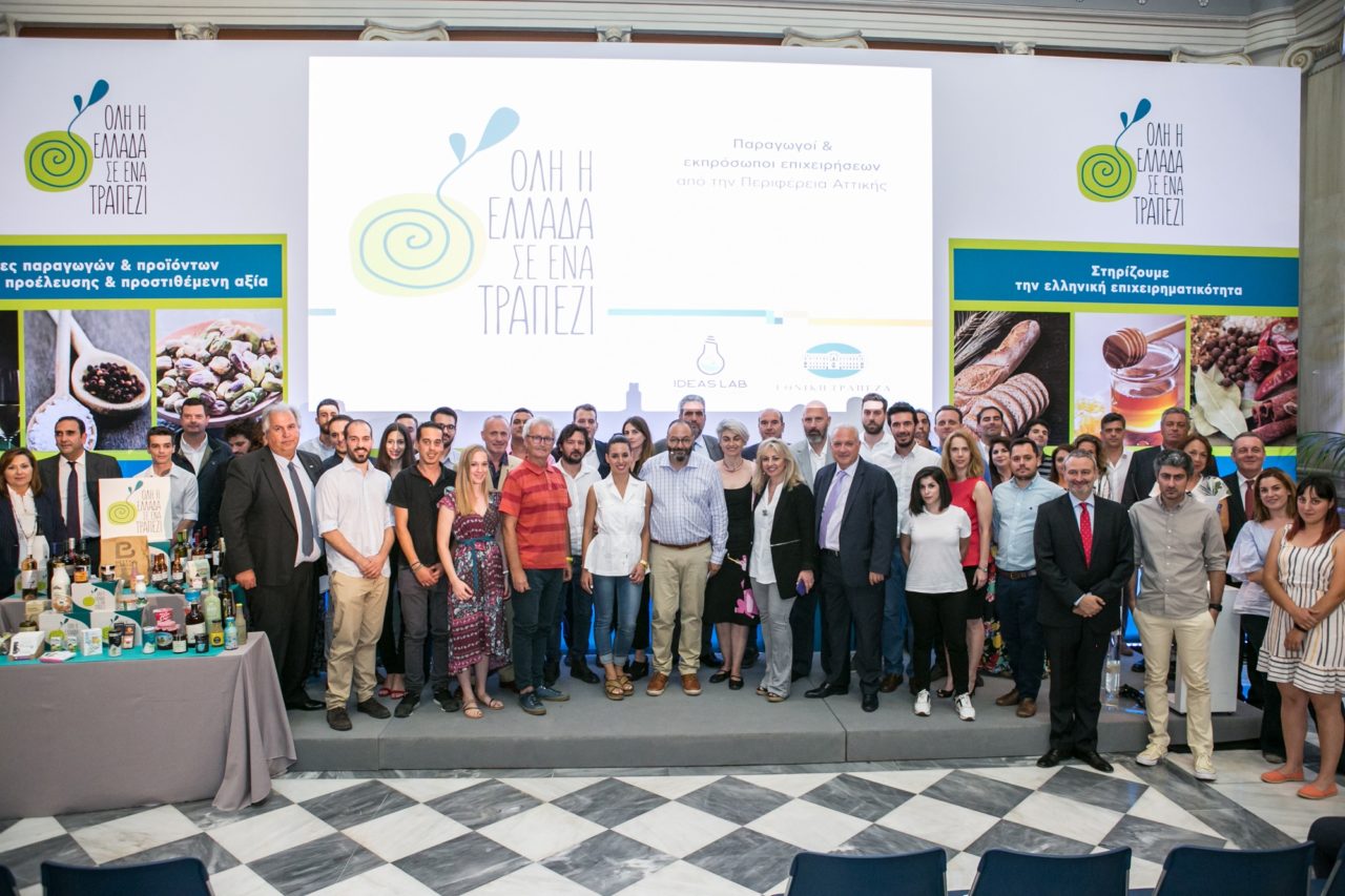 Η Εθνική Τράπεζα, στο πλαίσιο της στρατηγικής στήριξης του αγροτο-διατροφικού τομέα, προχώρησε σήμερα, στην Αθήνα, σε μια ακόμη εκδήλωση «Όλη η Ελλάδα ένα τραπέζι». Είναι η έκτη εκδήλωση που πραγματοποιείται τους τελευταίους δώδεκα μήνες, από τη μία έως την άλλη άκρη της Ελλάδας. Η πρωτοβουλία αυτή στοχεύει στην ανάδειξη και την προώθηση θετικών παραδειγμάτων από το χώρο των επιχειρήσεων της αγρο-διατροφής και ευρύτερα, της αγρο-επιχειρηματικότητας, εγκαινιάζοντας ταυτόχρονα έναν μόνιμο και εποικοδομητικό διάλογο με όλους τους εμπλεκόμενους φορείς της χώρας, όπως παραγωγούς, μεταποιητές προϊόντων, συνεταιρισμούς, οργανισμούς πιστοποίησης, ελληνικά και ξένα επιμελητήρια, καθώς και Πανεπιστήμια.