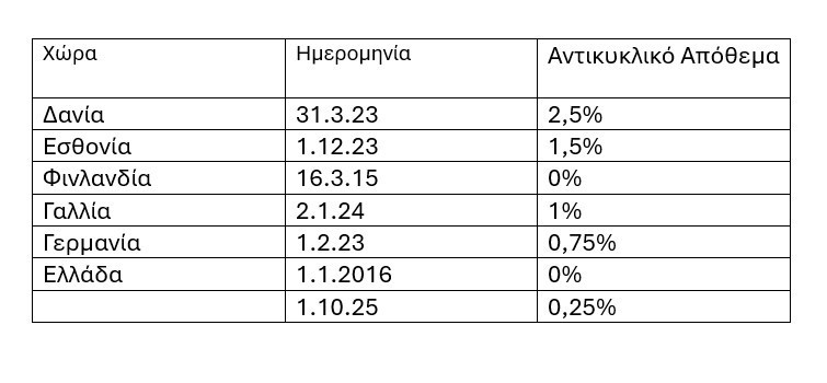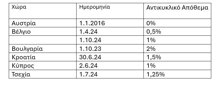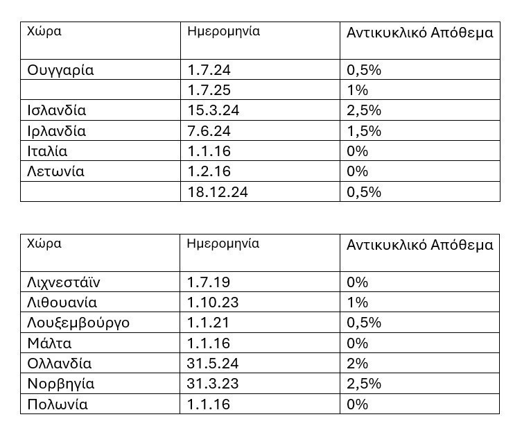 H Λιθουανία, η Μάλτα, η Αυστρία, η Ισπανία, η Πολωνία και η Φινλανδία είναι οι χώρες που προς το παρόν διατηρούν μηδενικό αντικυκλικό απόθεμα.