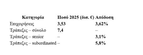 Τα στοιχεία αυτά παρέχει η ενδιάμεση έκθεση της Τράπεζας της Ελλάδος. Οι ελληνικές μη χρηματοπιστωτικές επιχειρήσεις εντός του 2025 προχώρησαν σε επτά νέες εκδόσεις συνολικού ύψους 3,53 δισ. ευρώ, οι οποίες έχουν πραγματοποιηθεί με σημαντικά χαμηλότερο κόστος χρηματοδότησης σε σχέση με τις προηγούμενες εκδόσεις.