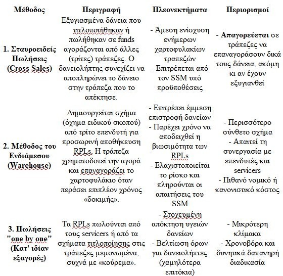 -Τη συγκέντρωση και προσωρινή αποθήκευση (warehousing) εξυγιασμένων δανείων σε ένα όχημα ειδικού σκοπού .