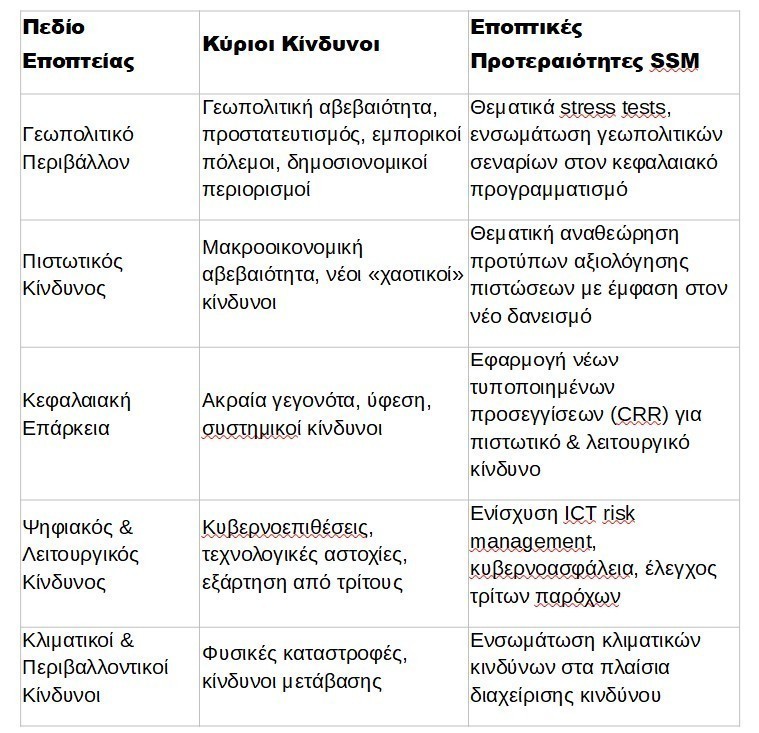 Οι ραγδαίες αλλαγές στο διεθνές τραπεζικό σύστημα οδηγούν σε διαφοροποίηση των εποπτικών στόχων από τον SSM.