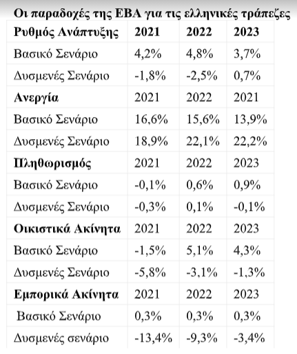 Έτσι, το «στρεσάρισμα» γίνεται με βάση τις εξής παραδοχές: το δυσμενές σενάριο της άσκησης προβλέπει για τις ελληνικές τράπεζες μείωση του ΑΕΠ κατά 1,8% για την εφετινή χρονιά, περαιτέρω συρρίκνωση κατά 2,5% το 2022 και σταθεροποίηση με +0,7% το 2023.
