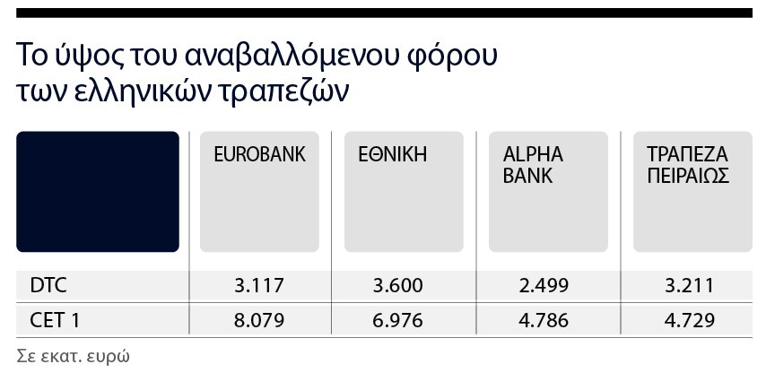 Τα εποπτικά κεφάλαια των τραπεζών που είναι αυτά τα οποία θα σβήσουν σταδιακά τον αναβαλλόμενο φόρο ανέρχονται σε 24.570 εκατ. ευρώ στην παρούσα φάση.