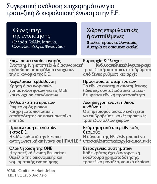 Η Ελλάδα συμβάλλει ενεργά στην προώθηση της τραπεζικής και κεφαλαιακής ένωσης, επιδιώκοντας να διαδραματίσει πρωταγωνιστικό ρόλο σε μια προσπάθεια που μπορεί να της προσδώσει μέγεθος και ποιότητα.