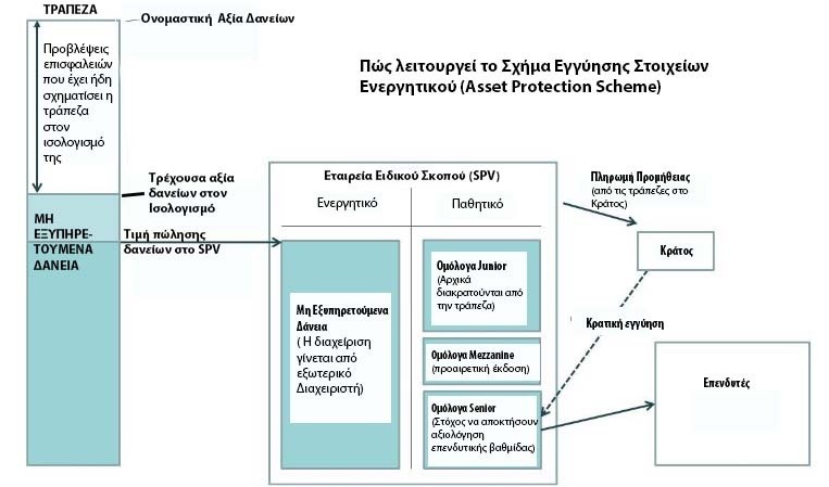Πρόκειται για μια διαδικασία Προστασίας Στοιχείων Ενεργητικού (Asset Protection Scheme) μέσω της τιτλοποίησης των κόκκινων δανείων, για την οποία προβλέπεται και κρατική εγγύηση, ώστε τα ασφαλέστερα από τα ομόλογα που θα προκύψουν να έχουν μεγαλύτερη αξία και το όλο εγχείρημα να λειτουργήσει ευκολότερα.