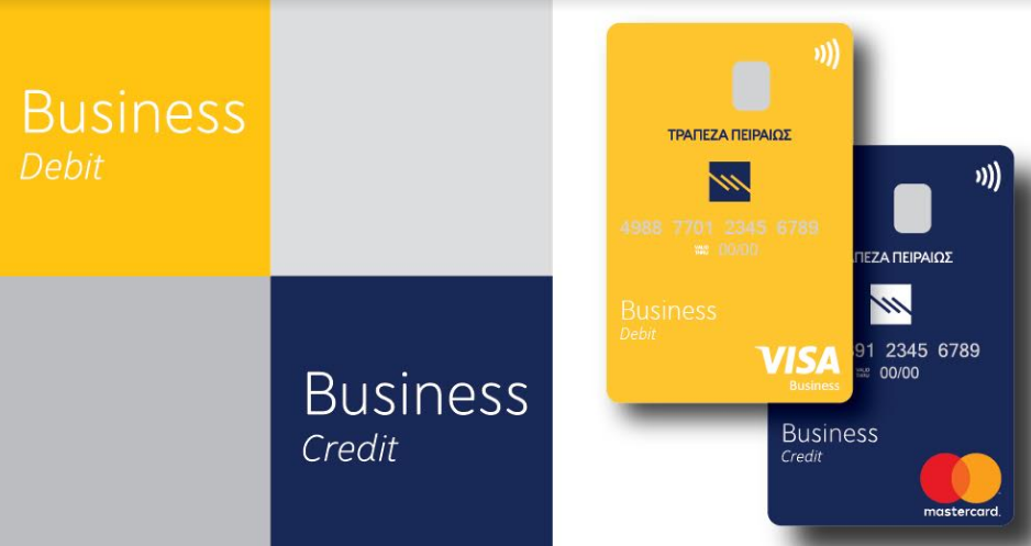 Η Τράπεζα Πειραιώς, διευρύνοντας συνεχώς τις υπηρεσίες της προς τους επιχειρηματίες και ελεύθερους επαγγελματίες, προσφέρει τις νέες κάρτες Business Debit και Credit Cards, ειδικά σχεδιασμένες για τις καθημερινές τους επαγγελματικές συναλλαγές.
