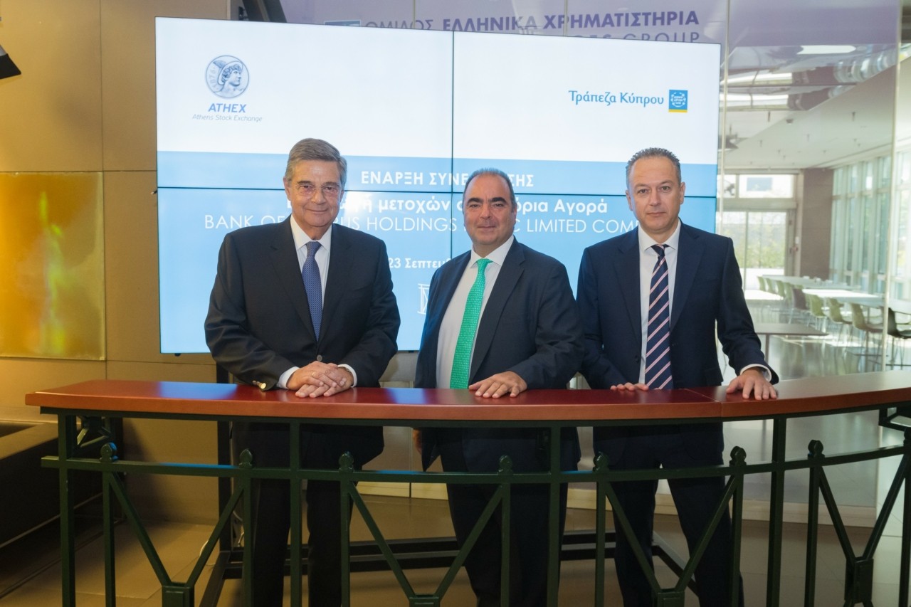 Καλωσορίζοντας τους εκπροσώπους της Τράπεζας Κύπρου, ο Διευθύνων Σύμβουλος του Ομίλου κ. Γιάννος Κοντόπουλος τόνισε μεταξύ άλλων: «Η απόφαση της Διοίκησης της Τράπεζας Κύπρου για επανεισαγωγή των τίτλων της στην ελληνική χρηματιστηριακή αγορά , στοχεύοντας αφενός στην αυξημένη αναγνωρισιμότητα και αφετέρου στην ενίσχυση της ρευστότητας που αυτή θα προκαλέσει, μας χαροποιεί ιδιαίτερα. Αποτελεί παράλληλα εμφατική επιβεβαίωση του ρόλου που διαδραματίζει πλέον το Χρηματιστήριο Αθηνών και στη διεθνή επενδυτική κοινότητα. Εμείς από την πλευρά μας στο Χρηματιστήριο Αθηνών, συνεχίζουμε τις συντονισμένες στρατηγικές κινήσεις μας με στόχο την περαιτέρω εξωστρέφεια και τη δυναμική επαφή των εταιρειών μας με τη διεθνή επενδυτική κοινότητα, συνεισφέροντας στον βαθμό που μας αναλογεί στην σταθερά εξελισσόμενη αναπτυξιακή πορεία της χώρας μας.