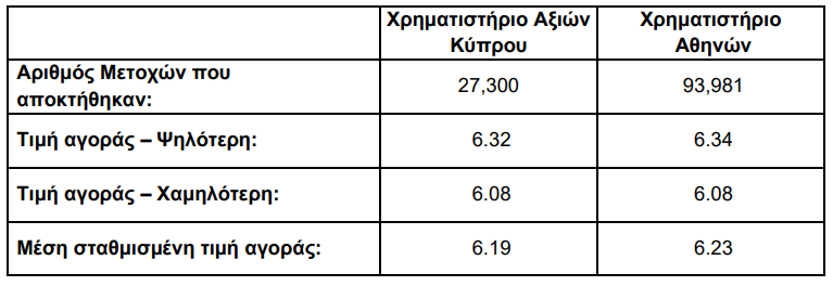 Η Εταιρία ανακοινώνει ότι μετά την επαναγορά των πιο πάνω Μετοχών, το Πρόγραμμα έχει ολοκληρωθεί με επιτυχία.