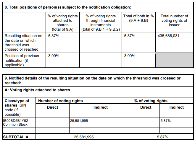Ειδικότερα, σύμφωνα με τα στοιχεία που κοινοποίησε η εισηγμένη στο Χρηματιστήριο Αθηνών, το ποσοστό των δικαιωμάτων ψήφου της Wellington Management Group LLP διαμορφώνεται πλέον σε 5,87%, από 3,99% που κατείχε προηγουμένως.