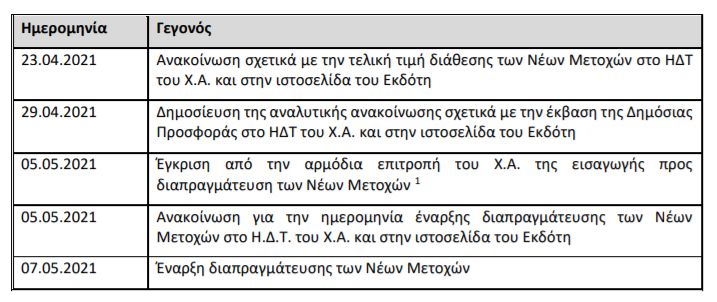 Κατωτέρω, παρατίθεται το αναμενόμενο χρονοδιάγραμμα της ολοκλήρωσης της Αύξησης, το οποίο έχει ως εξής: