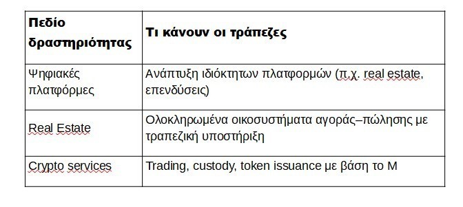 Το νέο ευρωπαϊκό πλαίσιο Markets in Crypto-Assets έχει πλέον δημιουργήσει νομική σαφήνεια και ρυθμιστική ασφάλεια, επιτρέποντας στις παραδοσιακές τράπεζες να δραστηριοποιηθούν σε ρυθμιζόμενες crypto υπηρεσίες (custody, trading, token issuance) χωρίς να αντιμετωπίζουν το προηγούμενο νομικό «γκρίζο πεδίο».