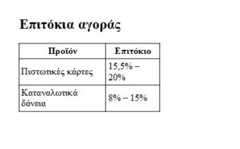 Στα καταναλωτικά δάνεια αναλόγως του ύψους και της επιφάνειας του πελάτη τα επιτόκια κινούνται από 8% έως 15%.