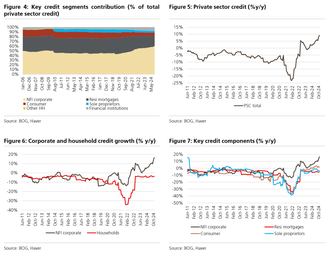 «Η ανάπτυξη επιταχύνθηκε σε ένα αξιοσημείωτο ποσοστό 16,5% σε ετήσια βάση (+2,2% σε μηνιαίο επίπεδο), γεγονός που ξεχωρίζει ιδιαίτερα στο πλαίσιο των ευρωπαϊκών τραπεζών. Πρόκειται για ένα εξαιρετικό ξεκίνημα προς τα τριετή σχέδια των τραπεζών και μπροστά από τις προβλέψεις μας για το 2024. Η μακροοικονομική ομάδα παραμένει θετική για την Ελλάδα, προβλέποντας αύξηση του ΑΕΠ κατά 2,8% για το 2025 και αναμένοντας ότι η απόδοση του δεκαετούς ομολόγου θα συμπιεστεί κατά 75 μονάδες βάσης φέτος στο 2,8%. Η συνολική πιστωτική ανάπτυξη του ιδιωτικού τομέα επιταχύνθηκε σε 9,1%, με την εταιρική πίστωση να φτάνει το 16,5%, ενώ η πίστωση των νοικοκυριών εξακολουθεί να συρρικνώνεται (-3,8% σε ετήσια βάση), αν και αμετάβλητη κατά τη διάρκεια του μήνα. Παρακολουθούμε επίσης τις καθαρές πιστωτικές ροές που δείχνουν ισχυρή καθαρή προσθήκη εταιρικών δανείων από τον Σεπτέμβριο, καθώς και μειούμενη συρρίκνωση των ενυπόθηκων δανείων τον Νοέμβριο. Το μείγμα καταθέσεων δεν έχει μετατοπιστεί προς τις προθεσμιακές καταθέσεις όπως αναμενόταν αρχικά από τις τράπεζες, με τις καταθέσεις όψεως να παραμένουν στο 75% περίπου, υποστηρίζοντας τα περιθώρια NIMs μεσοπρόθεσμα», καταλήγουν οι αναλυτές της UBS.