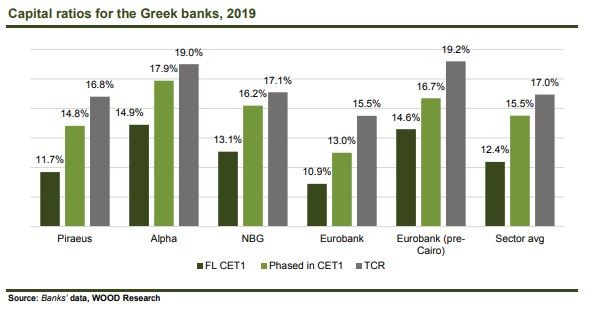 Η Wood εξέτασε αναλυτικά τα κεφαλαιακά αποθέματα και όπως πιστεύει η πιθανότητα για αναγκαστικές αυξήσεις κεφαλαίου είναι μάλλον χαμηλή, υποβοηθούμενη απο την σταθερή ευελιξία του επόπτη. Eτσι, πιστεύουμε ότι οι ελληνικές τράπεζες θα επιβιώσουν και θα επαναξιολογηθούν σημαντικά μόλις η πανδημία τελειώσει.