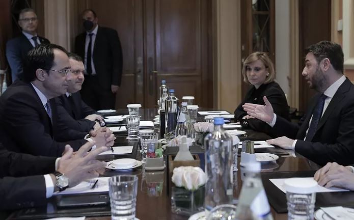 Από την πλευρά του, ο κ. Ανδρουλάκης είπε στον Πρόεδρο Χριστοδουλίδη πως «πιστεύω ότι με την εκλογή σου θα ανοίξει μια νέα προσπάθεια επίλυσης του κυπριακού ζητήματος με σεβασμό στο διεθνές δίκαιο, με σεβασμό στις αποφάσεις του ΟΗΕ. Θα είμαστε στο πλευρό σας, έχουμε χρέος να είμαστε στο πλευρό σας», τόνισε.