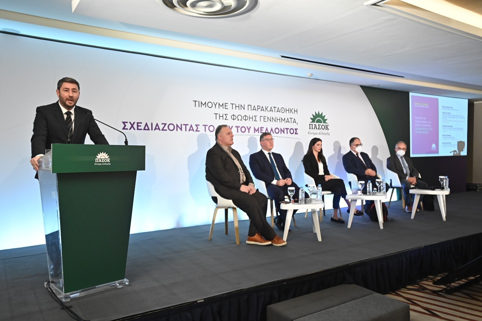 Ο νυν αρχηγός του ΠΑΣΟΚ ανεβαίνοντας στο βήμα της εκδήλωσης μίλησε για τον αγώνα της Φώφης Γεννηματά στο πολιτικό πεδίο, αναγνώρισε ότι ανέλαβε τεράστιες ευθύνες στη πιο δύσβατη στιγμή του ΠΑΣΟΚ, τόνισε ότι κατάφερε να θέσει τις βάσεις για την «αλλαγή κλίμακας» όσον αφορά στην πορεία του κόμματος, υπογράμμισε ότι στάθηκε κατά την «εισβολή» της πανδημίας απέναντι στον λαϊκισμό και τον ανορθολογισμό- και έτσι έκανε “γέφυρα” για να αναφερθεί αφενός στη «σφραγίδα» της Γεννηματά στις πολιτικές για την Υγεία και αφετέρου στην προγραμματική πρόταση του ΠΑΣΟΚ για το νέο ΕΣΥ.