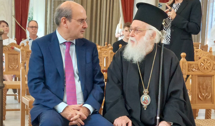 Ο Υπουργός είχε επίσης μακρά συνάντηση με τον Μακαριώτατο Αρχιεπίσκοπο Τιράνων, Δυρραχίου και πάσης Αλβανίας κ.κ. Αναστάσιο, με τον οποίο επισκέφτηκαν τον Ιερό Καθεδρικό Ναό της Αναστάσεως του Χριστού και το όμορο Πολιτισμικό και Συνεδριακό Κέντρο.