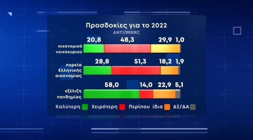 Το 58% των πολιτών θεωρεί ότι η πορεία της πανδημίας θα είναι καλύτερη το 2022 ενώ το ποσοστό αυτό πέφτει στο 20,8% όταν η ερώτηση αφορά τα οικονομικά του νοικοκυριού.